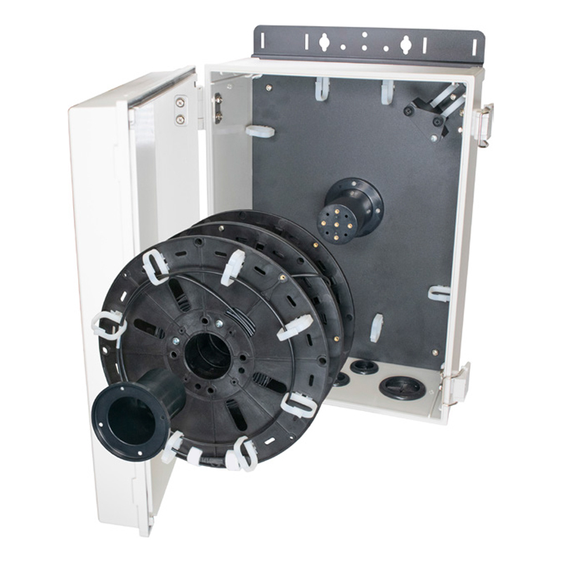 • Supports up to 1,000 feet of 12 fiber cable internally with capacity for additional cable on an external reel